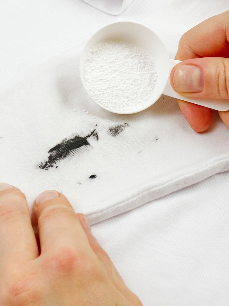 Når du har fjernet pletten, vasker du tøjet som normalt. Vær omhyggelig med at tjekke, om pletten er helt væk, inden du tørrer det.