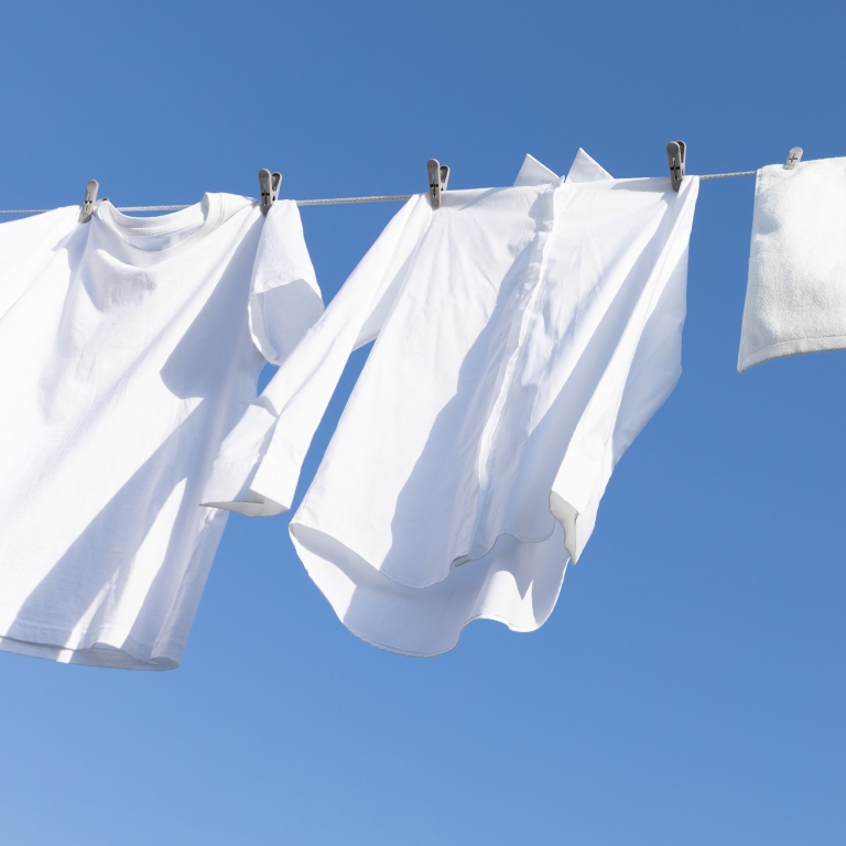 Utnyttja solens kraft: Torka kläderna utomhus i solljus, eftersom det fungerar som ett naturligt blekmedel.